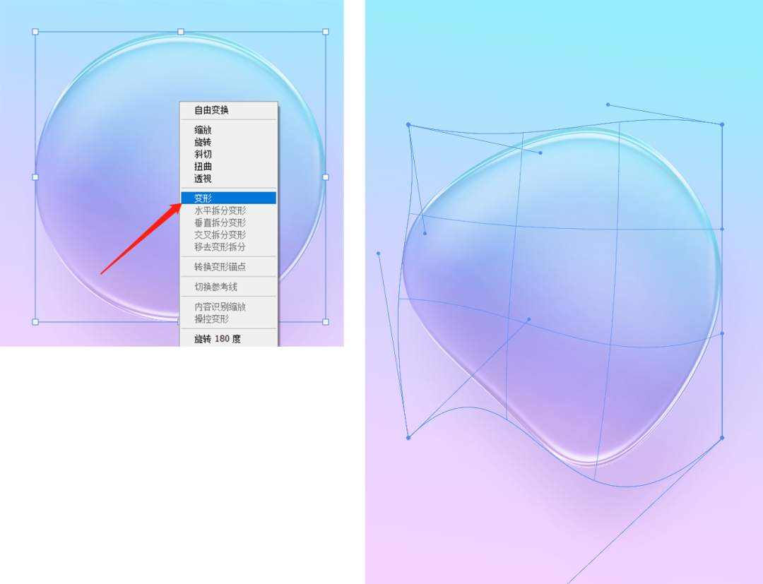 ctrl+t,点右键,调出“变形”菜单,对圆进行变形处理。
